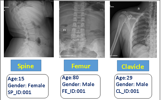 In the medical era, health of a bone is accessed by the bone mineral density (BMD) test. Bone fracture risk in the humans are estimated or evaluated by the BMD test. The test statement recognizes the presence of signs of presence of the frequent occurring disease in the bone called as osteoporosis. So it is obligatory to enclose a customary database in X-Ray images for the young bud researchers to capture up the dealings to the advance stage by accurate examination of the medical results of the images. The projected X-Ray database is termed XSITRAY, characterizes an early attempt to offer a group of X-Ray images of Spine, Femur, Clavicle, Extremity & Ankle, Extremity & Hand and Knee bones. The details such as age, gender and unique Id of the patient are interpreted in the database.
